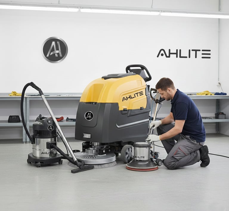 Ahlite provides reliable and professional cleaning machine repairing service for all types of industrial and commercial cleaning equipment. From scrubber dryers, road sweepers, vacuum cleaners, steam cleaners, to high-pressure washers, our expert technicians ensure fast diagnosis, genuine spare replacement, and long-lasting performance.